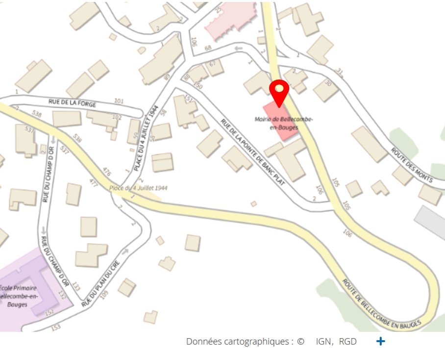 Plan d'accès à la salle des associations de Bellecombe en Bauges